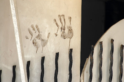 Someone took the posters down, systematically. One by one. Only in a few cases, they didn't do their job in a thorough manner. The maps, showing little bulldozers where houses are about to be demolished have been torn down, but not entirely.